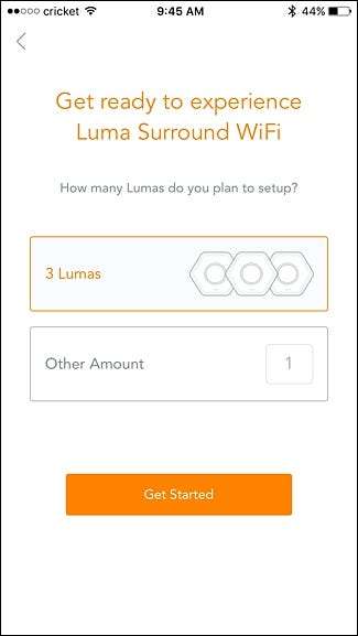 Nella schermata successiva dell'app, seleziona quante unità Luma stai configurando. Se non tre, seleziona "Altro importo".