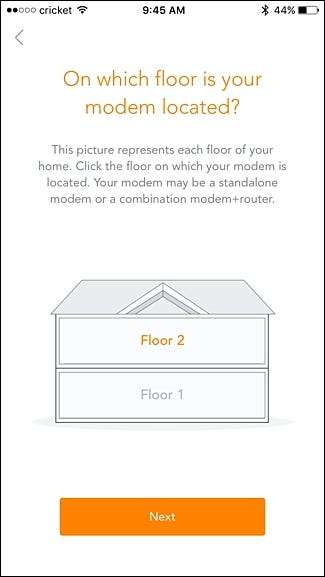 Se la tua casa ha più piani, seleziona su quale piano si trova il tuo modem, quindi tocca "Avanti".
