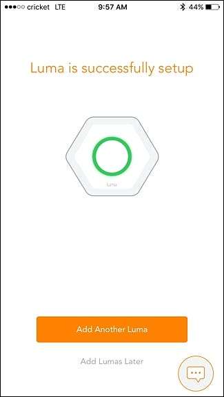Al termine, l'app dirà che il dispositivo Luma è stato configurato correttamente. Da lì, se hai un'altra unità Luma da installare, tocca "Aggiungi un'altra Luma".