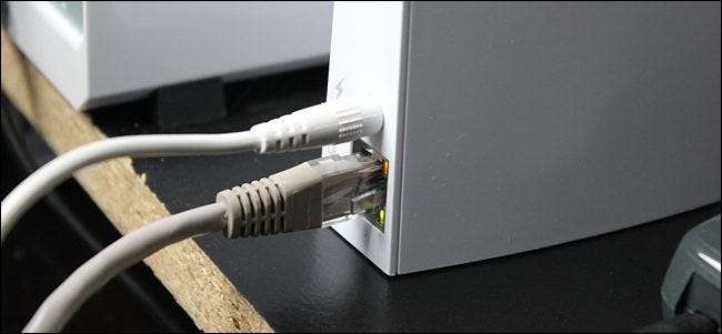 Inizia disimballando l'hub Wink, collegalo all'alimentazione e collegalo al router utilizzando il cavo Ethernet incluso (collegalo a qualsiasi porta Ethernet libera del router). voi può collegalo al tuo router tramite Wi-Fi, ma è meglio usare Ethernet se possibile.