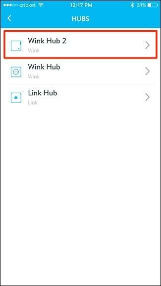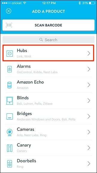 Poiché collegheremo Wink Hub all'app, selezionerai "Hub" dall'elenco.