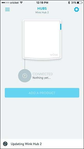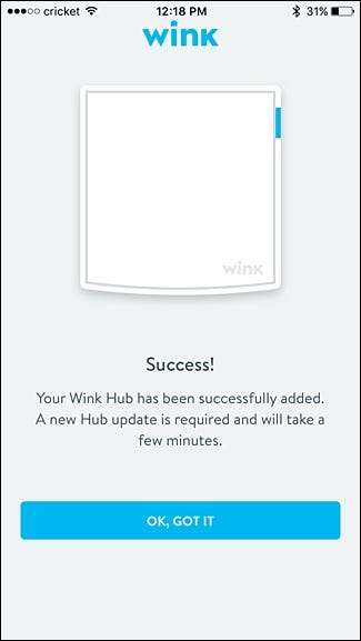 L'hub ora installerà automaticamente un aggiornamento, che dovrebbe richiedere solo pochi minuti, ma una volta terminato, sarai in grado di iniziare a utilizzare l'hub e aggiungervi dispositivi, nonché collegare altri dispositivi smarthome all'hub e al App occhiolino.