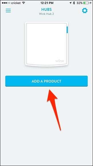 Per iniziare ad aggiungere dispositivi basati su Z-Wave o Zigbee al tuo Wink Hub, tocca "Aggiungi un prodotto".
