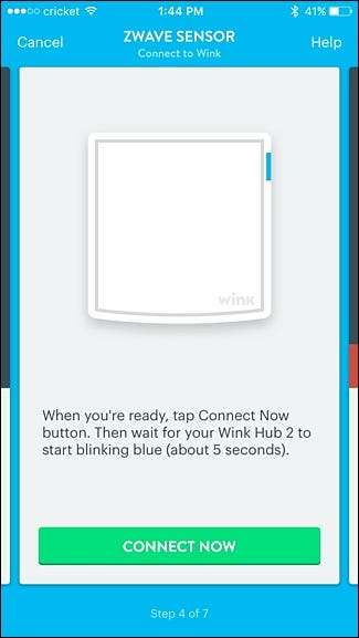 Verrà visualizzata una schermata in cui verrà visualizzato "Connetti ora" in basso. Toccalo e attendi che la luce di Wink Hub inizi a lampeggiare in blu.