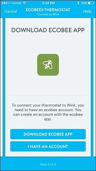Tocca "Ho un account" se hai già il termostato configurato (cosa che probabilmente farai a questo punto).