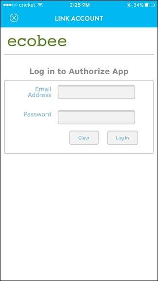 Inserisci le tue credenziali per il tuo account Ecobee e quindi tocca "Accedi".