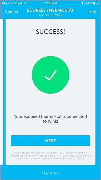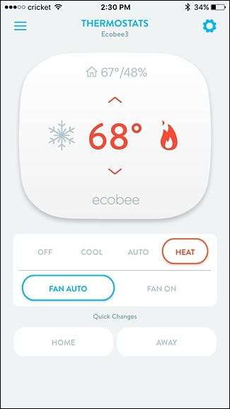 Il termostato verrà ora visualizzato nell'app Wink dove avrai quasi il pieno controllo delle sue impostazioni senza dover aprire separatamente l'app Ecobee3.