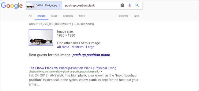 Proviamo ad esempio un'altra delle immagini di "Hamza". Questa immagine di un uomo che fa un pushup potrebbe essere perfetto per quasi tutte le pagine di fitness generale e, cosa sai, colpisce tutti i nostri allarmi contemporaneamente. È concesso in licenza per uso aziendale gratuito e modifica con attribuzione, è pieno di tag generali e chiede agli utenti di accreditare un sito falso per le recensioni dei vogatori.