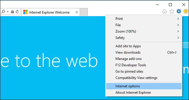 Internet Explorer include anche un'opzione per controllare se è possibile riprodurre GIF animate. Per disabilitare completamente le animazioni GIF, apri Internet Explorer, fai clic sull'icona del menu delle impostazioni e seleziona "Opzioni Internet".