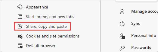 Dalle impostazioni del bordo, selezionare "Condividi, copia e incolla" dal menu Sidebar.