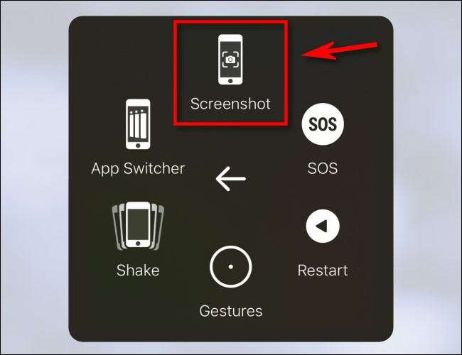 Se si sceglie di non utilizzare una delle azioni personalizzate, in qualsiasi momento che si desidera acquisire uno screenshot, toccare il tasto AssistiveTouch una volta e verrà visualizzato un menu a comparsa. Scegli Device & GT; Più, quindi tocca "Screenshot".