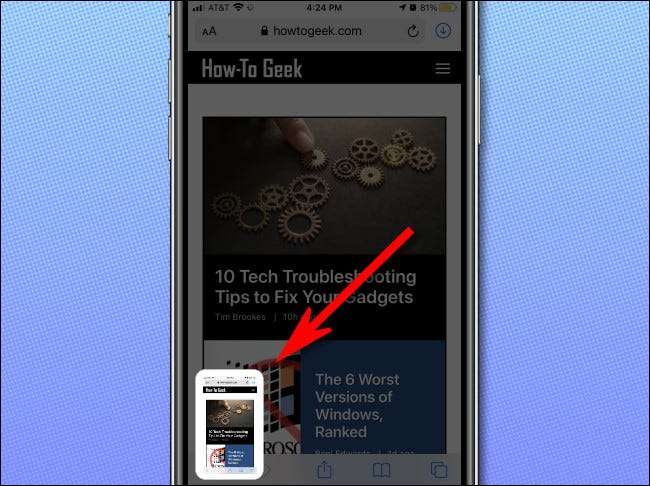 Una volta acquisita uno screenshot, vedrai un'immagine in miniatura di esso pop-up nell'angolo in basso a sinistra dello schermo del tuo iPhone. Se aspetti un momento, la miniatura scomparirà, oppure puoi licenziarlo più rapidamente facendo scorrere via a sinistra.