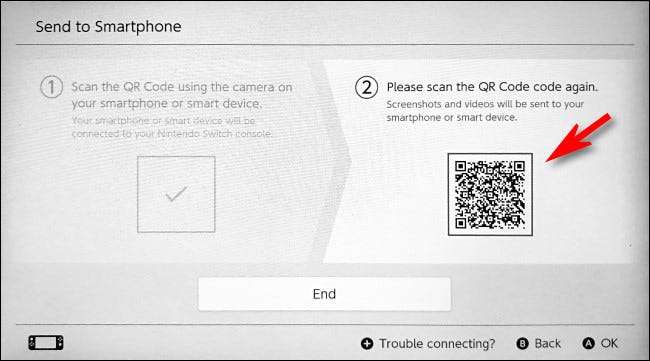 Quindi, l'interruttore ti fornisce un secondo codice QR. Ciò conferisce al telefono l'indirizzo del server Web temporaneo nell'interruttore con i collegamenti con gli screenshot e i video che hai condiviso. Da lì, è possibile scaricare immagini o video sul telefono.