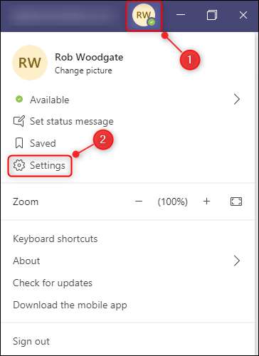In Microsoft Team, fai clic sulla tua immagine del profilo nell'angolo in alto a destra della finestra e seleziona "Impostazioni".