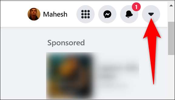 Nell'angolo in alto a destra del sito di Facebook, fare clic sull'icona della freccia verso il basso.