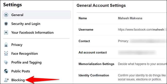 Facebook ti porterà a una pagina "Impostazioni generali". Qui, nella barra laterale a sinistra, fai clic su "Blocco".