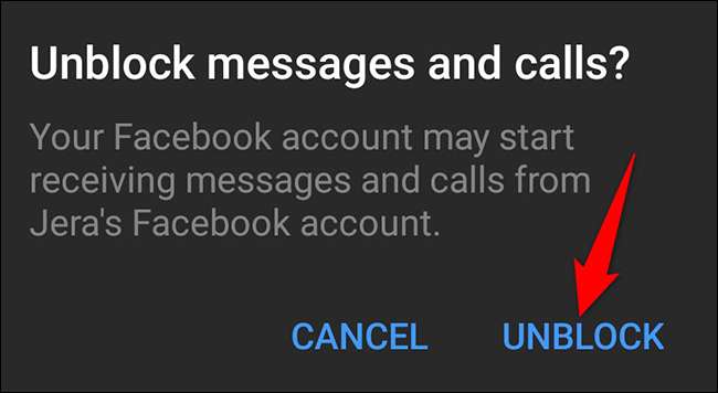 E immediatamente, Facebook sbloccherà l'utente selezionato nel tuo messaggero. Ora possono chiamare e inviarti un messaggio su Messenger.