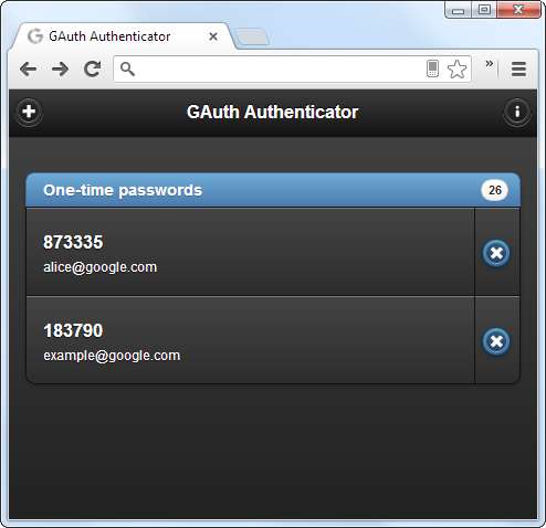 Se sei un utente di Chrome, puoi utilizzare GAuth Authenticator , che implementa Google Authenticator come estensione di Chrome. L'estensione memorizza la tua chiave segreta localmente e genera codici basati sul tempo che dovrai accedere, proprio come fanno le app mobili ufficiali.