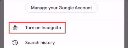 Ora seleziona "Accendi incognito" dal menu a discesa.