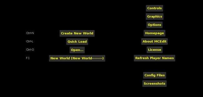 Dopo aver installato MCEdit, dovresti aprirlo e ottenere una schermata nera con una serie di pulsanti.