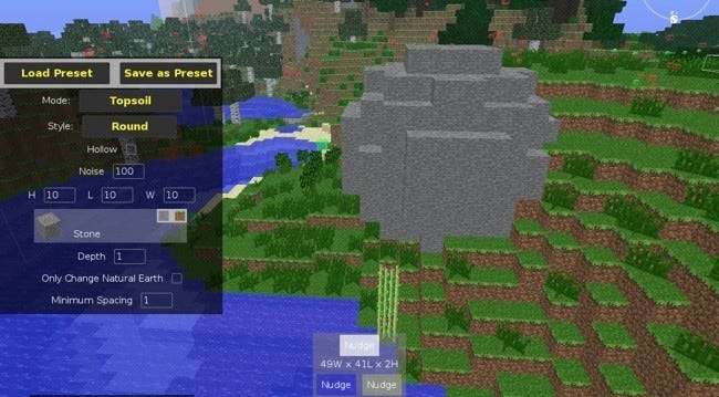 La barra degli strumenti a sinistra contiene gli strumenti per modificare la selezione. Il primo è "Spingi", che è simile agli strumenti di spinta per le selezioni, tranne per il fatto che questo strumento sposta tutti i blocchi nella regione con esso. Tieni presente che qualunque cosa in cui lo sposti verrà distrutta. Undo è tuo amico.