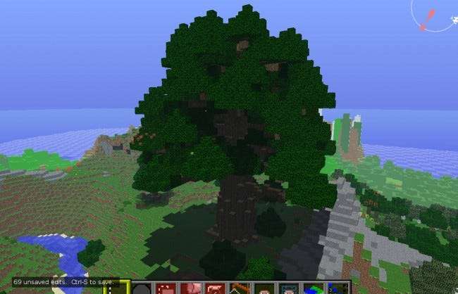 Le opzioni per questo filtro sono piuttosto semplici. Ad esempio, puoi selezionare una grande area quadrata, impostare "Conteggio alberi" su 1, "Altezza albero" su 40, "Densità rami" e "Spessore tronco" su 4 e premere "Filtro", che genera un aspetto fantastico, albero molto grande. Con MCEdit puoi creare intere foreste piene di questi alberi!