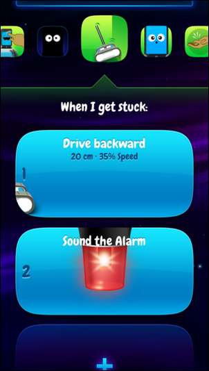 Queste risposte guidano il Romo quando sente un forte rumore, sbatte contro il muro, si trova in una stanza buia e così via. Ad esempio, puoi programmare il Romo in modo che scatti una foto quando batti le mani, rotoli lentamente all'indietro quando urta contro un muro o lampeggi la sua spia quando si perde nel buio. Puoi mettere insieme tutte le istruzioni che desideri; quando il tuo Romo va a sbattere contro il muro, potrebbe scattare una foto, fare marcia indietro, suonare l'allarme e poi rotolare in cerchio facendo lampeggiare la sua luce finché non lo salverai.