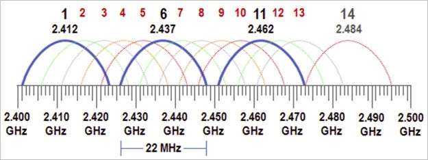 Per i migliori risultati e l'interoperabilità (minima interferenza), ci sono solo tre scelte di canale: canale 1, canale 6 e canale 11. Ecco un'immagine che mostra il motivo: