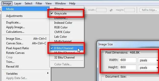 Gli screen saver Kindle sono 600 × 800 per il Kindle normale e 824 × 1200 per il DX. Quando crei immagini per entrambi i dispositivi, desideri lavorare in scala di grigi a 8 bit e salvare le immagini come file .PNG: l'hack del salvaschermo può gestire sia .JPG che .PNG, ma preferiamo salvarli in un formato di qualità superiore.