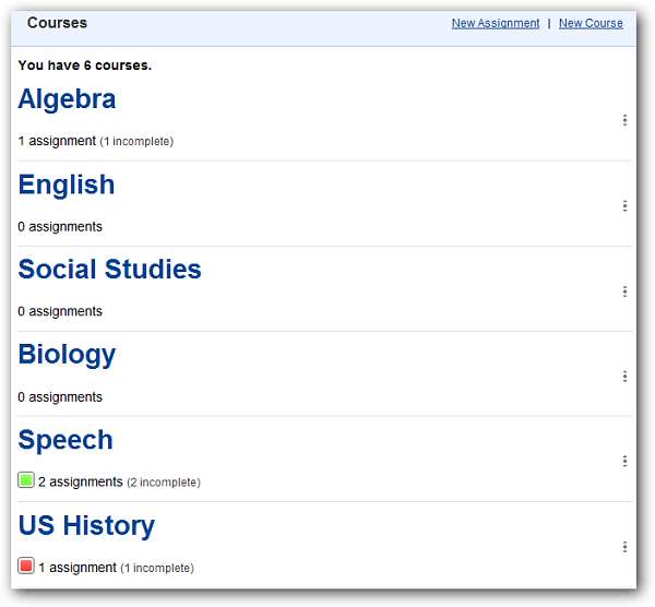 Puoi anche codificare i corsi con colori che possono essere utili quando hai una grande quantità di lavoro o condividi compiti.