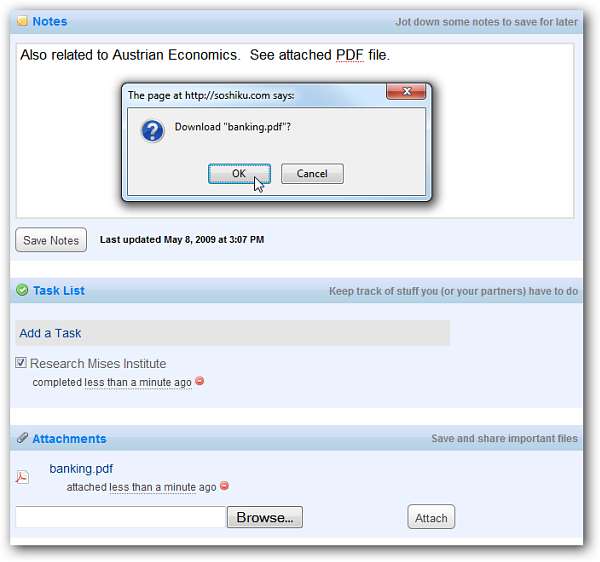 Puoi anche aggiungere note per il compito, attività specifiche che devono essere completate e caricare documenti che aiuteranno te oi partner a completare i progetti.