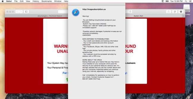 Quando riesci a essere infettato da qualcosa, la maggior parte degli adware, malware e spyware su OS X cercheranno di infettare il tuo browser in qualche modo, dirottando la tua nuova scheda, la ricerca e le home page, iniettando annunci nelle pagine e in modo casuale spuntando odiosi avvisi di supporto tecnico. La maggior parte non cancellerà il tuo disco rigido o qualcosa di veramente terribile ... ma in base alla crescente raffinatezza che stiamo vedendo, è solo una questione di tempo.