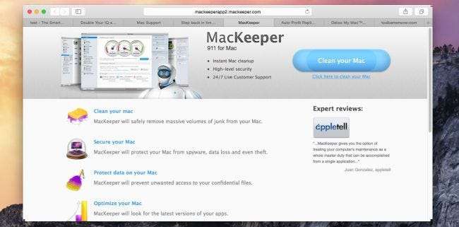 Abbiamo appena mostrato alcuni dei fastidiosi adware, ma gran parte del crapware in bundle è anche roba piuttosto scadente, e quasi ogni singolo bundler di crapware che abbiamo trovato, e quasi ogni singolo annuncio di adware ha cercato di farci installare MacKeeper. Non ne sappiamo molto, anche se abbiamo in programma di esaminare come funziona perché queste tattiche sono discutibili.