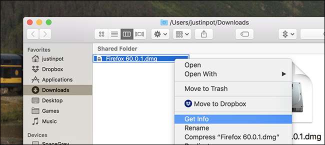 Verificarlo non è difficile. Fare clic con il pulsante destro del mouse sul scaricato nel Finder, quindi fare clic sul comando "Ottieni informazioni". Puoi anche selezionare il file e quindi premere Comando + I.