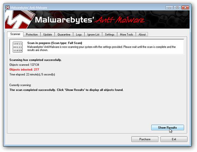 Per vedere cosa ha rilevato Malwarebytes Anti-Malware, fare clic su "Mostra risultati".
