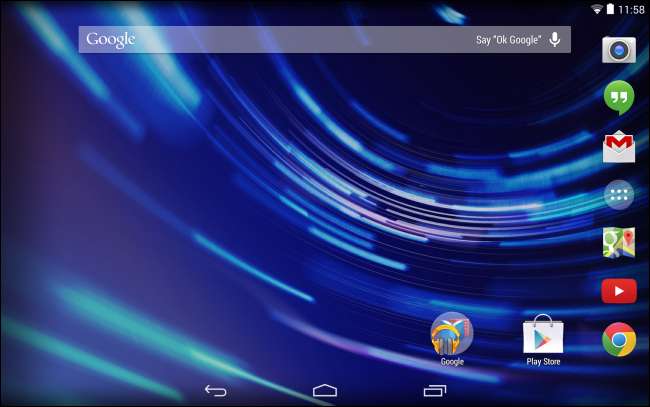 Google Experience Launcher potrebbe non essere tecnicamente parte di Android 4.4, ma ha debuttato insieme ad Android 4.4 sul Nexus 5. Su Android 4.4, Google Experience Launcher ha una barra di stato parzialmente trasparente e una barra di navigazione sulla schermata iniziale, mostrando il tuo carta da parati e nascondere quelle barre nere.