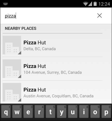 Il nuovo dialer di Android 4.4 ti consente anche di cercare aziende e comporre i loro numeri di telefono, direttamente dal dialer. Ad esempio, puoi aprire il dialer, cercare "pizza" e chiamare rapidamente una pizzeria nelle vicinanze.