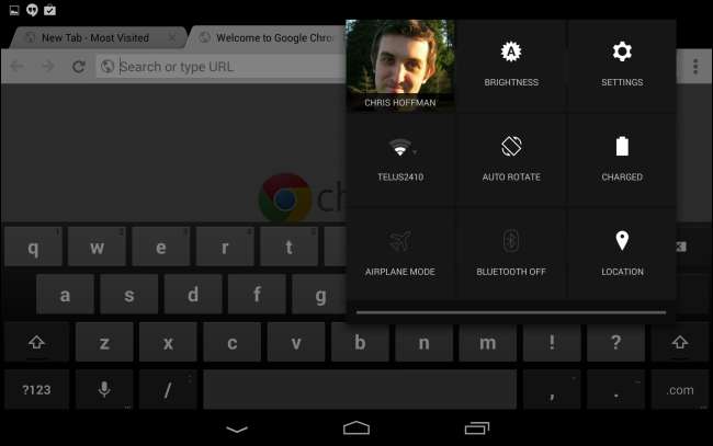 Il cambiamento più immediatamente evidente è il passaggio dal blu neon simile a Tron dell'interfaccia Holo di Android a un nuovo colore grigio neutro. Le icone della batteria, del Wi-Fi e del cellulare sulla barra di stato di Android, ad esempio, ora sono grigie. Anche le opzioni nel pannello delle impostazioni rapide sono grigie, così come gli accenti nel tastiera Google ufficiale .
