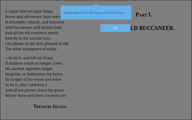 Per andare avanti con questo, Android include due nuovi gesti sui bordi. Quando la modalità immersiva è abilitata in un'app, uno scorrimento dai bordi superiore o inferiore rivelerà la barra di stato nascosta e la barra di navigazione.