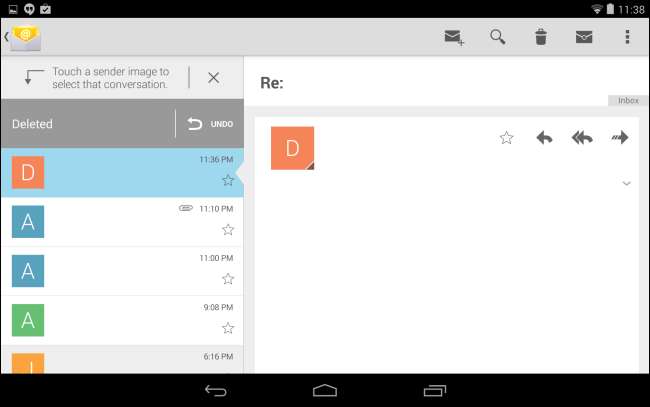 L'app Email inclusa ha finalmente visto un po 'di amore. L'app Mail ora assomiglia quasi all'app Gmail e condivide molte delle stesse funzioni e impostazioni di navigazione. Non sembra più una reliquia dimenticata.