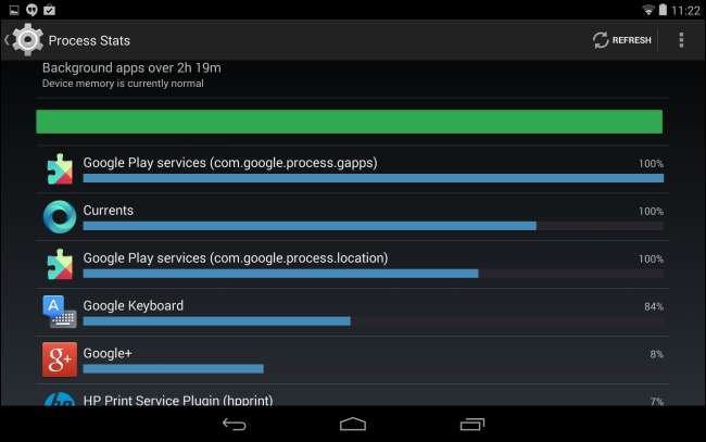 È disponibile una nuova opzione Statistiche di processo la schermata Opzioni sviluppatore nascosta che mostra più informazioni su ogni processo in esecuzione e il suo utilizzo della memoria. Ciò dovrebbe fornire agli sviluppatori più informazioni che possono utilizzare per ottimizzare l'utilizzo della memoria delle loro app.