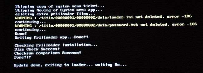 Ignora questi errori, tutto è installato correttamente e sei pronto per scavare nelle impostazioni di Priiloader.