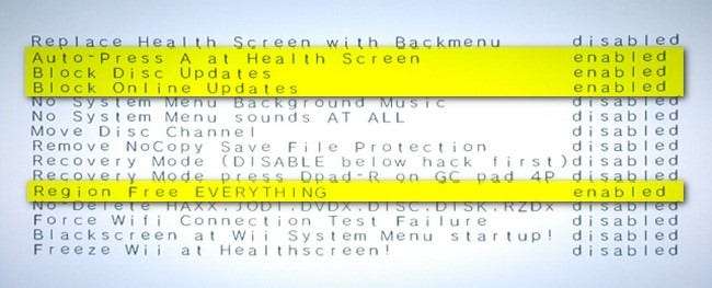 Per impostazione predefinita tutto è disabilitato, ti consigliamo di attivare "Auto-Press A at Health Screen" (perché premere A ogni dannata volta che si avvia la Wii è estremamente fastidioso), "Block Disc Updates" e "Block Online Updates" (perché non non fare tutto questo lavoro solo per far annullare a Nintendo) e "Region Free EVERYTHING" (perché un giorno qualcuno potrebbe portare la versione europea di Hello Kitty Adventure Island Party City 5 a casa tua e tu vorrai giocarci). Se vuoi saperne di più sulle impostazioni aggiuntive e determinare se devi abilitarle o meno, controlla il file documentazione completa per Priiloader qui .