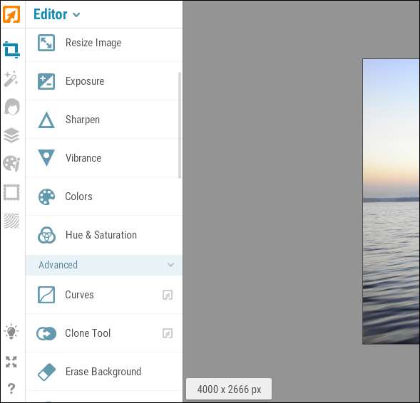 Pixlr ha preso una strada diversa e ha suddiviso le opzioni di modifica facili (o semplici) e avanzate in diversi strumenti. Pixlr Editor è lo strumento con gli strumenti di modifica avanzati mentre Pixlr Express è lo strumento facile da usare per tutti.