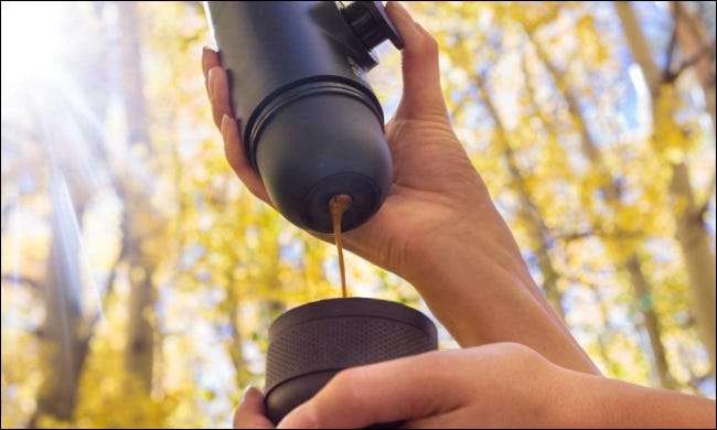 Il Wacaco Minipresso. è un piccolo dispositivo pratico che ha bisogno solo di acqua bollente per rendere il caffè espresso in movimento. Non usa neanche la potenza-è tutto il funzionamento manuale. Assicurati solo che la persona con cui stai acquistando abbia anche Un thermos eccellente per mantenere detto acqua bollente dentro, e possono fare un espresso in qualsiasi punto.