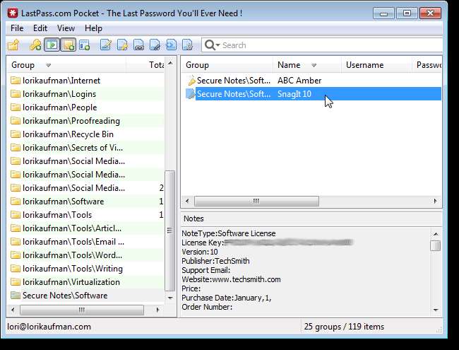 Se hai bisogno di aiuto per iniziare con LastPass, consulta il nostro How-To Geek Guide per iniziare con LastPass . Spiega cos'è LastPass, come registrarsi e installare LastPass e come utilizzare LastPass per generare e memorizzare password sicure. Abbiamo anche pubblicato un articolo su creazione e utilizzo di note sicure in LastPass .