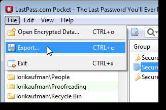 Le password possono essere salvate in un file crittografato, protetto dalla master password di LastPass, o una copia in testo semplice che non è protetta e leggibile da chiunque abbia accesso al computer. Una volta esportate, le password possono essere ricaricate in qualsiasi momento nel gestore delle password, anche se in quel momento non è disponibile l'accesso a Internet.