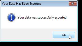 Quando i dati sono stati esportati correttamente, viene visualizzata una finestra di dialogo.
