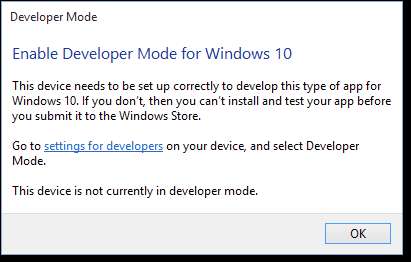 Ma se selezioni "Modalità sviluppatore", puoi installare app UWP dall'esterno di Windows Store, anche se non sono firmate. Questa è un'opzione cruciale per gli sviluppatori di app UWP, che vorranno testare le proprie app sui propri PC durante lo sviluppo. Questa opzione sostituisce la necessità di un file "Licenza sviluppatore" su Windows 8.1 .
