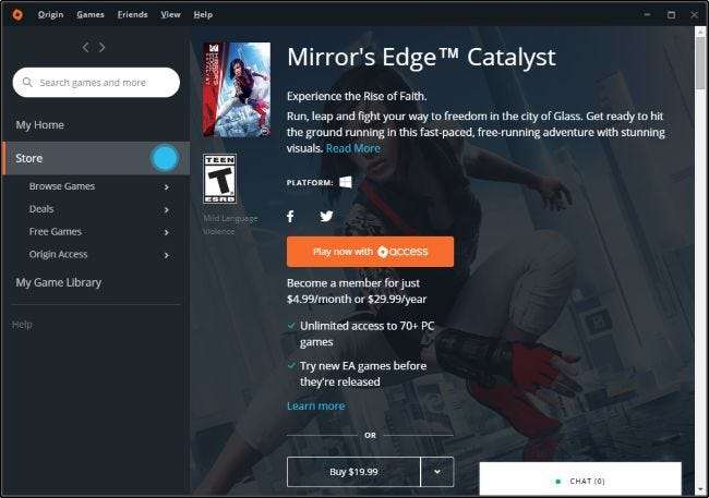 L'abbonamento offre anche l'accesso a parecchi giochi. A differenza della console, dove di solito è possibile ritirare una copia usata di questi giochi, non è possibile acquistare copie usate a buon mercato di questi giochi. Dovrai aspettare per metterli in vendita o acquistarli a prezzo pieno. Ad esempio, se volessi giocare a Mirror’s Edge Catalyst in questo momento, potresti acquistarlo per $ 20 e riprodurlo per sempre, pagare $ 5 per riprodurlo per un mese o pagare $ 30 per riprodurlo per un anno. E quella quota di abbonamento ti consentirà di accedere anche a molti altri giochi. Tuttavia, dopo la scadenza dell'abbonamento, perderai l'accesso ai giochi.